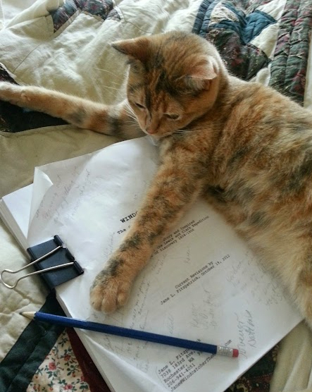 When I wrote my screenplay, “Sacajawea, The Windcatcher” (from 2003 – 2007), I must truly say I could not have written it without my big, red cat, Atticus Finch. He was one of my inspirations, and though it may have appeared that I was avoiding my writing by playing with him, for me it was quite the opposite.