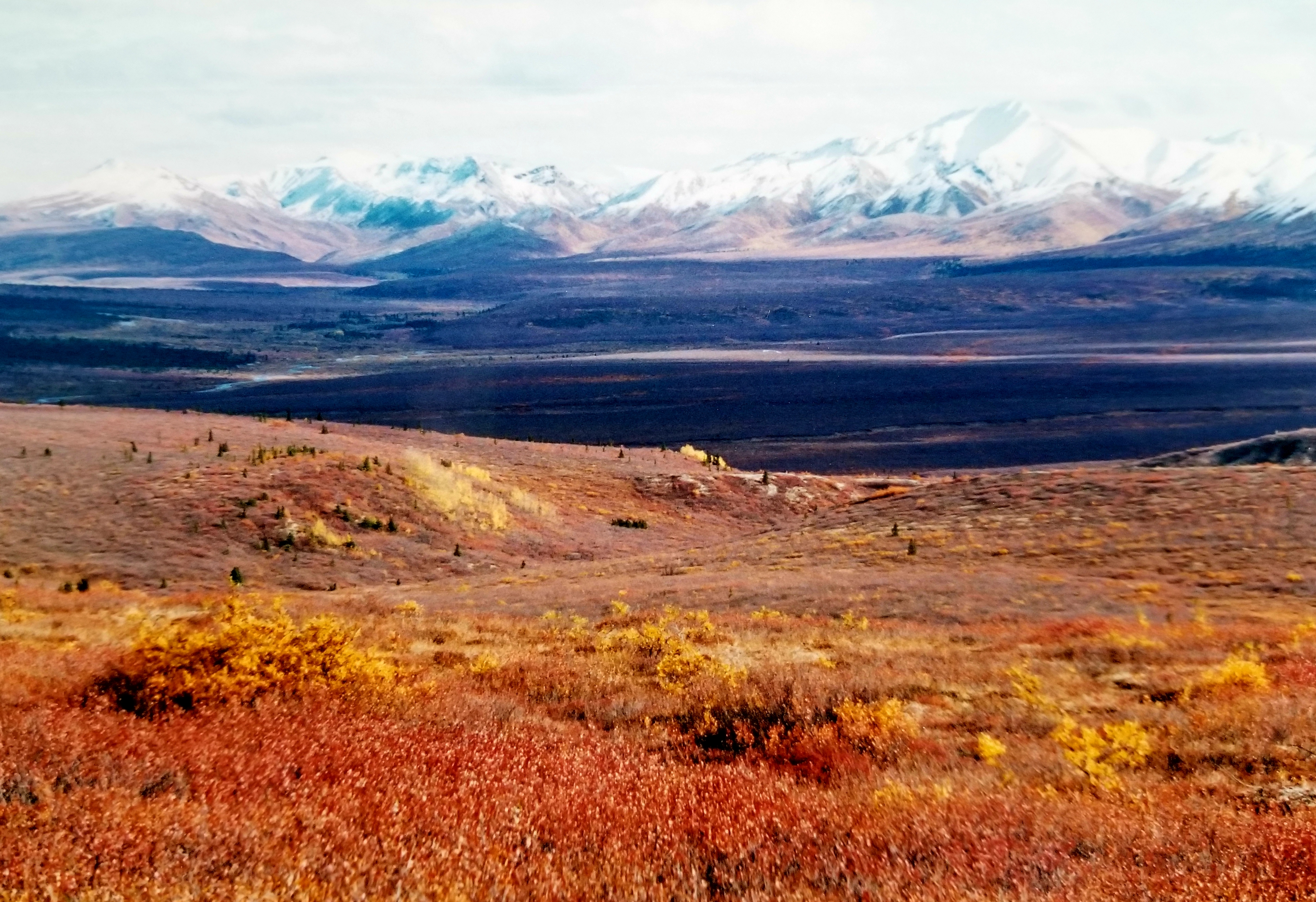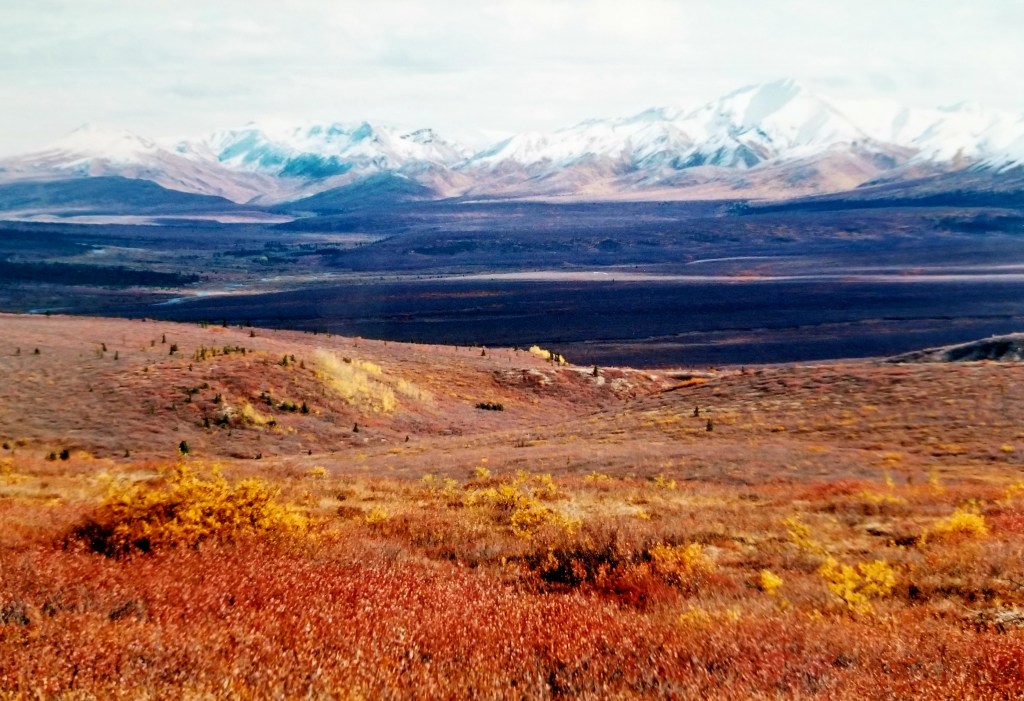 After the train, we went to Denali Lodge and rode school buses into the park. Becky, our guide, presented the history of the park and it was an incredible day! The photos we took said it all. From the yellow an orange tundra to the yellow and dark green forest, to the snowcapped, pink-tinged mountaintops – it was magnificent. Matthew’s camera shutter continued to click, and ten rolls later we were sure we got some awesome shots.