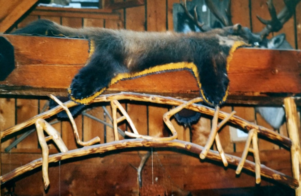 Next, we saw an authentic Native American village and we were able to pet the sled dogs. There were old cabins filled with stories of trappers and displaced dreams, and fabulous artifacts and works of art, including beadwork coats and dresses. Our friend, Dixie, was the creator of these exquisite garments and she had won many awards for her talent.