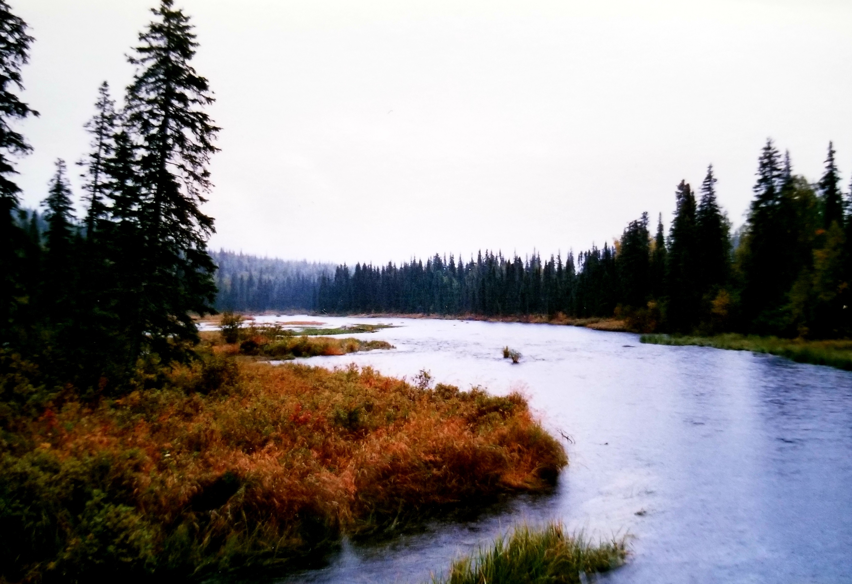 The river here is somewhat muddy and calm. Across the water from the lodge is a beautiful private home – a “heavenly” home, I’d say. I wonder what it’s like here in the wintertime. The pine and spruce are rather spindly indicating harsh and freezing weather. I imagine Alaska winters are not for sissies.
